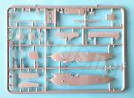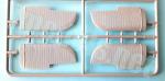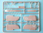 Separate parts comprise an instrument panel with tiny indicators crisply molded, plus a vertical frame to attach the pedals, the seat and a lever. The seat and pedals are well molded and look realistic. The fuselage sides also include the internal bulkhead located between the engine and the cockpit.