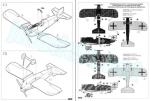 - 8-page A5 brochure printed in black and white. It contains a historical summary about the aircraft with technical data, a numbered parts plan, a list of color with equivalents in Humbrol enamels, 12 construction chapters and two pages of profiles. Clear. The back side of the box shows color profiles of one of the paint versions.