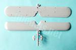 Los estabilizadores tienen los soportes inferiores separados y muestran los timones bien grabados y las aletas marcadas en relieve muy delgado. Las piezas carecen de lengüetas o pernos para sujetarlas al fuselaje. El timón vertical está igualmente bien grabado y en la parte superior lleva una pequeña luz de navegación moldeada en cada mitad del fuselaje.