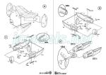 The inner fuselage halves are flat and have no detail. The cabin area is only provided with an empty floor. The cockpit consists of a rear panel, a detailed floor with two good seats, small plastic pedals, control levers and a console detailed with photo-etched parts. The instrument panel must be added after closing the fuselage, as it comes in a resin piece cast with a nose section. The panel comes nicely detailed with a photo-etched piece and a small acetate sheet for the gauges.