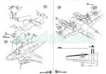 They are printed in black and white on a 14-page A5 booklet that features a short history of the aircraft, a numbered parts plan, a color list with equivalent paints in Gunze Sangyo range, 15 assembly chapters, and three pages with profiles in color. The instructions are very clear, showing detailed views to place some parts in the engines and fuselage.