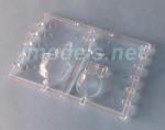 Tanto el parabrisas como el morro acristalado vienen de una pieza, están moldeados sin distorsiones y bien detallados. El morro posee una extensión en forma de anillo abierto por abajo para salvar el pozo delantero que debe pegarse antes que el morro transparente.