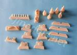 - Fotograbado (9 piezas), plástico transparente (13 piezas), acetato (1 pieza), resina (33 piezas), plástico inyectado (80 piezas.