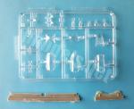 Las dos cubiertas de las carlingas se distribuyen en cinco piezas más un brazo de apertura aparte en la delantera. Aunque las piezas no son demasiado finas, me parecen aceptables por su transparencia y el detalle grabado en ellas.