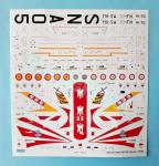 - Impresas por Cartograf. Escarapelas francesas y españolas, marcas conmemorativas, matrículas, paneles de instrumentos y numerosos estarcidos. Aspecto fino y brillante, con buen registro y colores saturados. Sin soporte excedente.