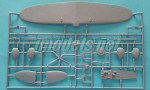 The fuselage halves include the tail, rudder and a section of the wingroots. The outer sides have a few panel lines to be scribed a bit more deeply, especially those on the tail, which are faintly engraved, and some areas to be smoothed. On the inner sides you have a few big raised pin marks to clean. Apart from that, there is nothing of the internal cockpit structure or lines to align and attach the floor into the cockpit. However, you do have raised lines to set the engine inside the cowling. Under the nose there is a fine air intake and two short exhausts. Under the tail you have a coarse arrester hook (the aircraft was a carrier bomber) which really needs a replacement.