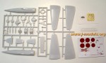 - Injected moulded plastic (30 parts), photoetched fret (9 parts), 1 acetate part for the instrument panel and 1 vacuum formed canopy.