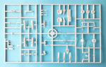- Plástico inyectado (45 piezas), plástico transparente (3 piezas), resina (2 piezas), fotograbado (20 piezas), acetato (1 pieza).