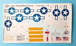 La hoja está realizada por Propagteam y contiene insignias norteamericanas, numerales, bandas identificativas, marcas de derribos y banderas. Las calcas tienen aspecto brillante y fino, así como un buen registro y saturación de color. El soporte no es excesivo.