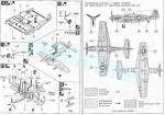 - 6-page folded leaflet printed in black and white. It shows a historical and technical summary about the aircraft, a numbered parts diagram, a table of colors with matches in Humbrol paints, 14 assembly stages and a page of profiles. The back side of the box contains profiles and Humbrol paint references. Clear.