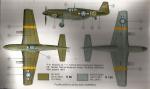 - Folleto doblado de 6 páginas impreso en blanco y negro. Contiene un resumen histórico y técnico sobre el avión, un plano numerado de piezas, una tabla de colores con referencias de pinturas de Humbrol, 14 capítulos de montaje y una página de perfiles. La cara trasera de la caja incluye perfiles en color y referencias de pinturas de Humbrol. Claras.