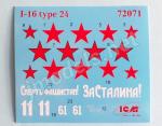 The sheet contains Russian stars with and without a black contour line, slogans, white numerals and small victory marks. The sheet looks good and decals are apparently thin.