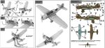 Instructions are published in an A4 booklet printed in color with 3D exploded views. They show paint codes with color matches in several ranges (Vallejo Model Air, Hataka, Life Color, Mr Hobby and AK Interactive), parts plan, 13 assembly stages and color profiles for painting and setting decals. Generally, they are easy to follow, although they are also vague in some specific cases, as in the location of the gunner station inside the fuselage. Unfortunately, there are some obvious mistakes in the identification of some sprues and parts. Landing lights are numbered L1, when in fact they are K1 and the bombs and stabilizers show the letter L, when they are in sprue N.