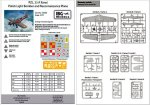 - Folleto de 8 páginas a color en tamaño A4. Incluye código de colores de pintura, plano de piezas, 13 secuencias de montaje, vistas del modelo terminado y perfiles para pintar y poner calcas. Claras.