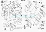 El interior del fuselaje también incluye el tubo de chorro, representado en un cilindro hueco dividido en mitades con borde exterior fino y biselado, más una pieza redonda que cierra la parte anterior con el extremo de la turbina en relieve. La zona delantera del fuselaje incluye un pozo repartido en tres piezas, con marca en el fondo para el encaje del neumático, pero exento de más detalle a los lados. También hay que añadir los transparentes de las cámaras, algo gruesos, pero exteriormente bien detallados. Todos ellos disponen de piezas de plástico aparte superpuestas que muestran las lentes de las cámaras en relieve, lo que da un mayor toque de realismo.