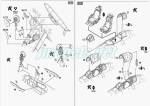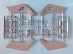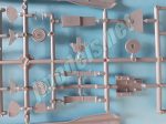 La rueda delantera está moldeada de una pieza con la pata y el guardabarros. También incluye una sección del brazo hidráulico de plegado. La pieza me parece bien replicada, pero Sword ha olvidado numerar la pieza transparente que corresponde a la luz de correteo. Afortunadamente, las instrucciones muestran su presencia en el paso 12 del montaje. La parte inferior del brazo es una pieza aparte al igual que las tapas.