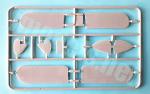 The box of this KKY-1 contains three small gray plastic sprues, a clear sprue, the decal sheet, and the instructions. Pieces are not thick in general and do not show much evident flash. The low-pressure molding that Amodel use leaves something to be desired in most parts, which need some refinement, basically soft sanding or filling in some slight sinks present on a few parts. Contrary to what might be expected, there are no ejector marks and clear parts are neither distorted nor thick as one often finds in oher kits from this manufacturer.