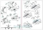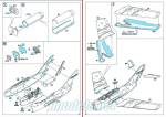 The cockpit sides are separate parts showing nice raised detail and are enhanced with a bunch of PE parts for the instruments and consoles. The parts are tiny and delicate, but some of them also have a decal replacement. Alignment of the cockpit walls with the floor is achieved by means of the three bulkheads. The side pieces of the cockpit are aligned with the bulkheads and the whole assembly is glued inside the fuselage. Fortunately, the instructions indicate the gaps where we must add weight to keep the model balanced when finished. The fuselage rear includes a separate nozzle, made up of three simple pieces.