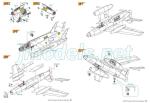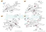 The auxiliary undercarriage on each side consists of a leg with a torsion arm molded in the piece, a separate folding arm and the wheel, which is one piece and has slight seam lines on the tire although the hubs are well detailed. The leg is placed on a small resin hinge. The size of the exploded views are a bit small in this subassembly and one misses more detailed views to place the pieces accurately. The alternative in this case is to check photos of the real aircraft.
