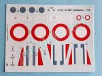 The sheet is made by Aviprint. It contains French cockades with a separate central circle, markings for the vertical rudder and stabilizers, as well as codes for the AB1 and AB3 squadrons, the two units grouped in the First Attack Flotilla that took part in WWII operating from land bases. Decals are thin with good contrast and colors show correct saturation.
