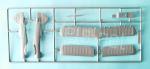 La caja lleva cuatro bastidores de piezas, incluido uno transparente, la hoja de máscaras y la de calcas, además de las instrucciones. El plástico está moldeado con la acostumbrada finura y nitidez de las marcas japonesas, quedando por limpiar algunas marcas de eyector leves y pequeñas en el interior de la carlinga y la catapulta.