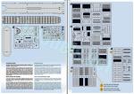 - Folleto de 20 páginas con formato A4 impreso en color. Contiene una lista de colores con equivalencias de pinturas de Revell, un plano numerado de piezas, 44 secuencias de montaje y dos páginas de perfiles.