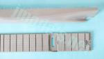 The kit provides four types of containers: 20’ containers, two types of 40’ containers with different capacities, and 45’ containers. External detail, though simple, is well represented in all of them. Assembly is straightforward, as it consists of attaching the sides. Instructions offer up to seven different colours for painting them and that’s a wide choice for the modeller’s «artistic» taste. There are also 130 decals with the Hapag-Lloyd name for each container.