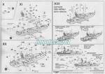 El folleto de instrucciones consta de cuatro páginas formadas a partir de una doble hoja A4 plegada. La primera página muestra una presentación histórica y técnica del buque en polaco e inglés. Las demás contienen trece etapas generales de montaje y la guía para pintar el modelo y colocar las calcas. No hay diagrama para localizar las piezas en los bastidores, pero estos muestran claramente los números referenciados en las instrucciones. Aunque no se menciona, los códigos de los colores corresponden a la gama de Humbrol esmalte. Los dibujos son claros y nítidos, y muestran con eficacia las diferentes opciones de montaje y pintura para las dos versiones propuestas.