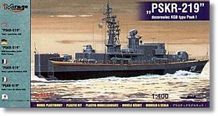 Los buques rusos denominados Proyecto 1241.2 Molnya-2 (Relámpago) pertenecen a un diseño evolucionado a partir de las corbetas Clase Tarantul. Con algo más de eslora que sus predecesoras y dotadas de motores diésel, estas embarcaciones, además de misiones antibuque y antisubmarinas, están especializadas en misiones de patrulla costera y vigilancia de fronteras. La mayor parte de ellas se botaron entre finales de los años 70 y finales de los años 80 del siglo pasado. Varios modelos de la Clase Molnya-2 fueron exportados con éxito a otros países como la India, Ucrania, Cuba y Bulgaria. La maqueta de Mirage Hobby representa un modelo destinado al KGB soviético, organismo que tenía a su cargo la vigilancia de las fronteras de la URSS, por ello estos buques se identificaban con las siglas PSKR, Pogranichniy Storozhevoy Korabl (Buque de Vigilancia de Fronteras). De este modelo sólo se fabricaron dos ejemplares (PSKR 219 y 214) que fueron probados y tomados como base para una posterior evolución (1241.2 PE) con nuevos sistemas de armamento y detección. Tras la desaparición de la Unión Soviética, el buque de patrulla costera 214 se integró en el nuevo servicio de vigilancia costero ruso con el código 021. Se desconoce, sin embargo, el destino final de la PSKR 219.