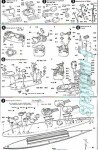 Las instrucciones resumen el montaje en 8 etapas que comienzan por la construcción de las superestructuras, puente y chimenea (todas concentradas a popa), en una segunda fase nos centramos en el montaje del casco y la artillería, y por último añadiremos a éstos los elementos montados al principio. En lo referente a pintura, hay dos alternativas: el esquema estándar anterior a 1944, con el clásico gris y la cubierta en color madera, o el del camuflaje que llevó de 1944 en adelante compuesto de azules oscuros, rojizos, blancos y de gris claro. Aunque a mí no me gustan los barcos así pintados, reconozco que es todo un reto para el modelista a esta escala. Por cierto, en el perfil que muestra el buque camuflado aparecen los cañones Bofors que reclamaba más arriba. Uno comienza a sospechar que la renovación de la maqueta no ha sido todo lo completa que tal vez necesitaba ésta después de tantos años.