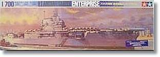 Es la última edición del veterano Enterprise de Tamiya. La maqueta en general es muy buena, y es que el fabricante ha echado el resto, más aún tratándose de un buque tan conocido como este. El modelo viene en tres bolsas donde encontramos por un lado el casco, la base y la cubierta de vuelo. Otra bolsa contiene dos grandes grapas de piezas y la última alberga la dotación aérea. Además encontramos el contrapeso metálico típico de los Waterline e instrucciones en inglés y japonés.