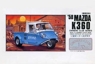 La maqueta de Arii es otra reedición de la original de LS perteneciente a la colección 1/32 Owners Club compuesta de 24 entregas, en su gran mayoría automóviles utilitarios populares en Japón entre los años 50 y 90 aproximadamente. Esta caja fue reeditada varias veces por las dos marcas, pero Arii le añadió un toldo a la original y ocasionalmente la ha sacado también con él. Del Mazda K360 hay una maqueta más actual, mejor y más cara de la marca coreana Ka Models en la escala 1/24.