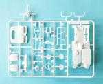 La maqueta consta de un solo bastidor de piezas blancas, la carrocería moldeada aparte, un bastidor de piezas transparentes, una mínima hoja de calcas y las instrucciones. El plástico está bien moldeado y las piezas no traen rebabas, salvo en contados casos del bastidor transparente. Lo que sí hay en abundancia son marcas de eyector. Las visibles se centran en el interior y techo de la cabina, pero también en uno de los lados de la llanta de la rueda delantera, y estas arruinan un tanto su detalle. Los neumáticos llevan nódulos de salida del eyector que dejarán su marca al quitarlos.