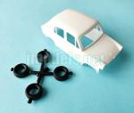 La pieza única de la carrocería capta bastante bien los perfiles y molduras del Carol. Las puertas, los tiradores y el parabrisas están bien perfilados y la rejilla de ventilación del motor en la parte trasera se aprecia con nitidez. Sin embargo, los intermitentes de giro laterales son erróneos y tienen forma alargada en lugar de redonda. El nombre del modelo aparece en calca plateada tras las ventanillas traseras.