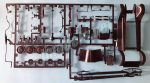 As usual, construction begins with the engine, which consists of two separate halves and parts for the rocker cover, fuel and oil pump, alternator, pulleys and belt in one piece and the fan propeller. The radiator front face is attached to the calender in a chrome piece with separate filler cap. The rear side is separated, as are the upper and lower hoses. Overall, the engine is acceptably detailed for a kit at this scale.