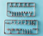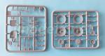 The wheels look excellent and are molded in an unusual way. The tread is molded separately, this avoids annoying seam lines in the middle. The sides of the tire are attached to the rim, which comes in halves and has bearings between them that allow wheel turning. The hubs are different depending on the axle. They are detailed with flat photo-etched discs at the front axle, while on the rear one they are molded with the rim due to the nuts around the hub.