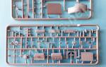 The external sides of the tray are detailed with fittings and small photo-etched parts for the latches and holders, as well as a shovel. Under the rear end of the tray there is a sparebox and a fuel can, both detailed with photo-etched parts.