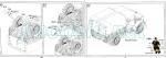 The tray is attached on a frame molded with the rear fenders. These are detailed with separate mudflaps. The rendition of the wooden boxy structure is very good on both sides. The base has the transmission access hatch separated and features small hinges, as well as the rear bumper detailed with tail lights. On the inside, the tray has boxlike structures to cover the gaps in the fenders and the spare wheel with brackets molded in the rim.
