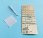 The lower hull consists of one piece per side. Riveting is crisp on all of them. The sides also show the pins for attaching the return rollers and the bogies, as well as the bases and pins for the drive wheels. The front side is molded with the glacis plate, which has a pair of sharp towing clevises. Detail on the lower rear plate shows the tow hook and two further clevises, while above them are two stowage boxes, one of them detailed with separate wing nuts, a spare wheel, and the license plate. This piece is photo-etched and includes a plastic taillight.