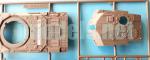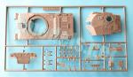 The lower hull is separated into four pieces with the front lower plate molded with the bottom side. The lower piece is flat and the front plate is detailed with two tow hooks and the track adjustment devices. Missing, however, is the obvious towing bollard that can be seen in images of the Challenger I in Bosnia and elsewhere when it was not covered by additional armor. Detailers will have an easy task because the piece is not difficult to copy.