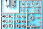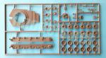 The hull sides are detailed with the drive wheel differentials, wheel dampers, idler wheel arms and return roller cylinders, although the rollers are separate pieces. The dampers are unrealistically molded on the plate, but after adding the road wheels and the side skirts, little or nothing will be noticed. The sprockets and idlers are double and show good detail, especially on the external wheel. The sprocket teeth are well defined despite their tiny size. The inner wheels in the running gear are molded with the suspension arms, while the outer ones show a fairly correct detail on the rim.