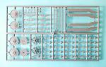 La caja contiene tres bastidores de piezas, un bastidor con las cadenas de plástico, la hoja de calcas y las instrucciones. Contemplando las piezas y el moldeado, en general muy decente, se nota que la maqueta tiene aspecto de serie limitada, sin embargo el molde no carece de mérito, ya que las marcas evidentes no son profusas y las rebabas necesitarán cierto detenimiento en un par de piezas del engranaje de las ruedas tractoras y algunos restos leves en pocas más.