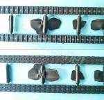 Las cadenas son dos tramos de plástico algo gruesos pero de cierta flexibilidad. Los eslabones están mucho mejor marcados y detallados por fuera que por dentro, donde el detalle es simplón. Los extremos se unen a presión con calor. Las instrucciones no muestran la orientación de los eslabones, pero es fácil comprobarla en cualquier foto del carro.