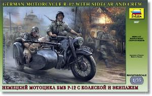 Esta es una maqueta que apareció en 2009 como molde nuevo y que Zvezda viene reeditando desde entonces. También ha sido copiada por Revell con sus propias instrucciones, calcas y versiones diferentes. Esta misma maqueta, pero sin el sidecar y con dos figuras diferentes, ha sido también puesta a la venta por el fabricante ruso como German R-12 Heavy Motorcycle with Rider and Officer (referencia 3632). Aunque los moldes antiguos de la casa rusa no son precisamente un primor, hay que reconocer que se esmeró bastante en este.
