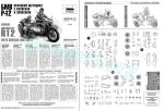 They come in a folded six-page A4 brochure printed in black and white. It contains a brief historical summary on the motorcycle, a numbered parts plan, views of the two possible finishes, 21 assembly sequences, profiles and a table of colors with matches in Zvezda and Humbrol paints. Assembly sequences are easy to follow. The back of the box also shows the two finishing options I mentioned above.
