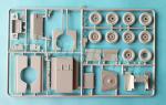 The chassis frame is almost completely moulded in a piece, with the exception of a few cross members, such as the last one, as is common in many kits, and a few others under the gearbox and engine. The piece has some marks only on the underside and is moulded with the lower engine half, which is rather bad due to the soft detail, the cab floor with the seat bases, and an unrealistic panel in the place where the engine compartment should be.