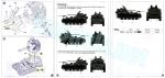 - 12-page booklet printed in black and white. It shows a numbered parts plan, 17 construction chapters and two pages of profiles in color with matches in several paint ranges for the overall Olive Drab of the vehicles.
