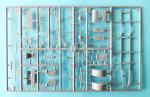 The chassis is complete in one piece without any pin marks. The front part is detailed with the bumper plus the tow hooks and the plate. The last cross member has a separate hitch. In addition to this, we must add the fuel tank, made up of two halves with large raised marks on the interior sides and a sink mark on the top.