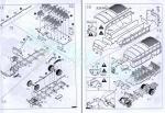 - 8-page brochure printed in black and white. It contains a historical introduction with technical data, a numbered parts plan, 21 assembly chapters and 2 pages of profiles. The back side of the box shows a third paint finish with a list of Vallejo paint colors. They are not very clear in some assemblies (see taxt).