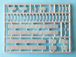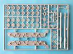 The base and sides of the hull are molded in one piece. The piece is flat on the outside and the only details on the front plate are the tow hooks. The sides are detailed with an overlapped piece reproducing the suspension arms, the shock absorbers and the two inner return rollers. Of these elements, the arms are somewhat better molded than the shock absorbers, which look a little flat. Both the idler and road wheels are two-piece and have nicely detailed rims. The sprockets also come in two pieces with good definition in the teeth and in the gaps of the external discs. The outer return rollers are provided as separate pieces.